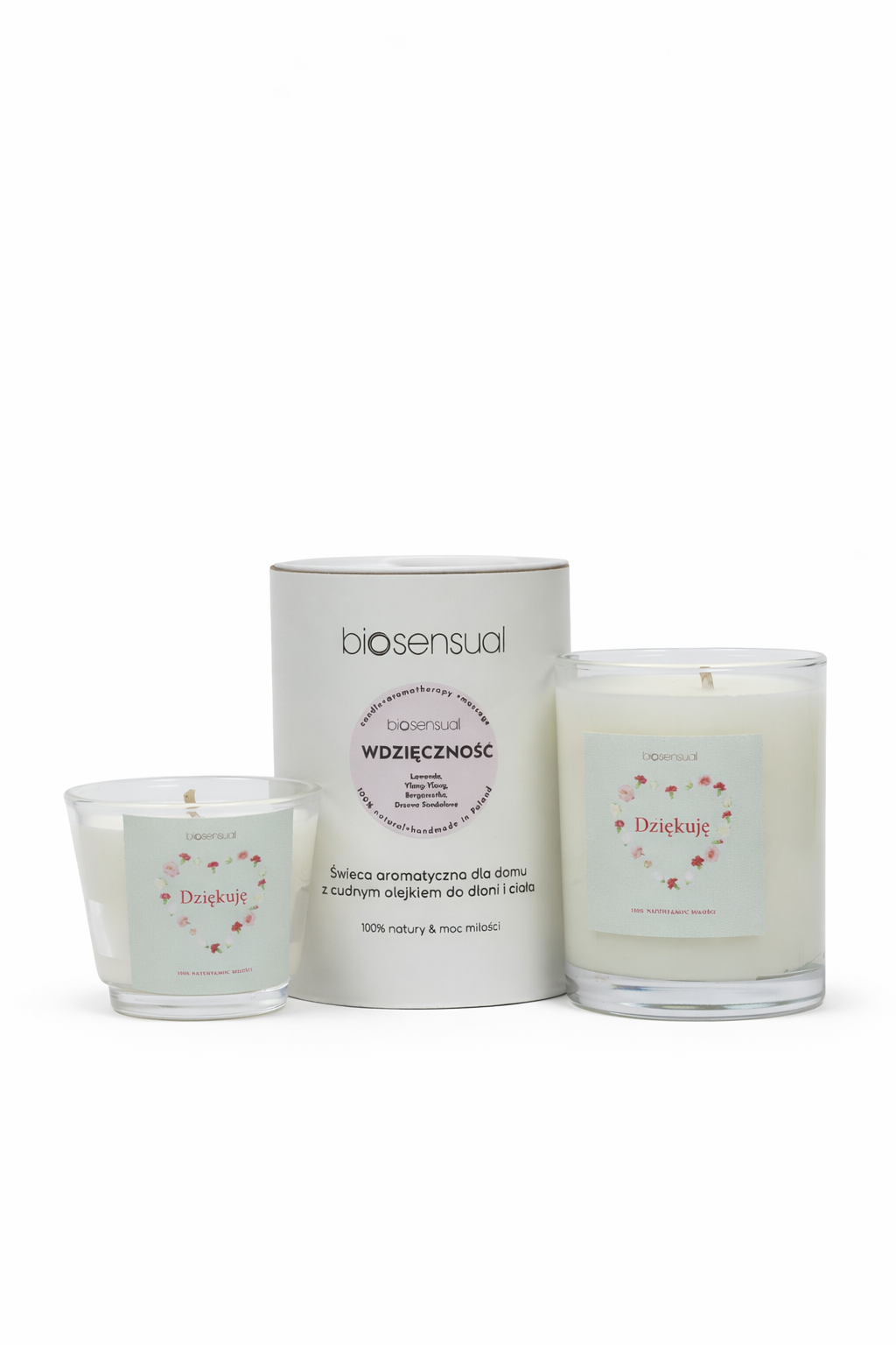 Świeca intencyjna „Dziękuję” – świeca zapachowa z intencją wdzięczności | Biosensual